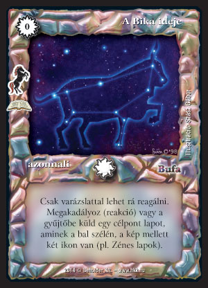 A Bika ideje (6): Bevallom, ezt a lapot nem láttam tesztelésen, így kicsit sötét ló. A metától függ, mennyi a Zénes lap egy-egy pakliban (a dal vagy a Rox jut most eszembe, amiben elég sok van) - vagyis hogy beférhet-e a sideba. De azért jó, hogy ilyen lap is van, a versenyen használt legjobb lapok között azért elég sok a Zénes. Nagy kár, hogy a varázslatok pont megfogják, míg az egyelőre kevésbé használt lény alapú counterek nem, fordítva jobb lett volna. Az egyszerűség kedvéért valóban az ikonok darabszáma alapján működik, szóval levisz néhány UR-t is (meg Inváziót, Csillagképeket), viszont 1-2 Zén kibújik a hatása alól.