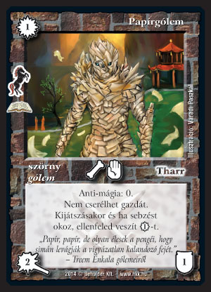Papírgólem (7): Ezt leginkább gólem vagy moa pakliban tudom elképzelni, de egy Villámháborús lényesbe is beférhet, mivel az ellenfél varázspontját elvenni általában hasznos, és manapság már 1 VP is sokat számít. Azért a legjobb nyilván akkor, ha magunk is drágítunk, vagyis gólem pakliban, ott lesz is mit elvenni, és könnyebben is beüt.
