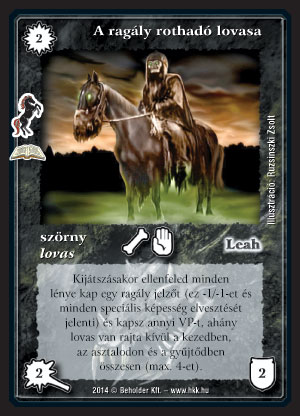 A ragály rothadó lovasa (9): Ez egy igen jó lap a tesztelők véleménye szerint. Valóban, bármilyen pakliban, még ha nem is ad VP-t, a hordalényeket leszedi ill. meggyengíti. Manapság pedig a lények már elég komoly dolgokat tudnak, szóval ez majdhogynem leszedi az ellenfél összes lényét, ami 2 VP-ért, lássuk be, nem rossz, főleg, hogy még egy lényt is kapunk mellé. Ha mindezt egy lovas pakliban teszi, mondjuk nulláért, akkor főleg finom. Csak azért nem kap még több pontot, mert egyelőre sok pakli nem játszik lényekkel, azok ellen pedig, hát, nem az igazi.