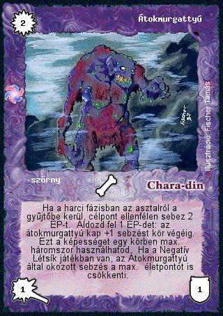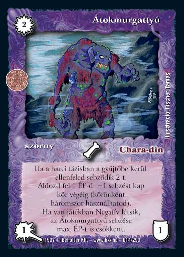 Szöveg: Ha a harci fázisban az asztalról a gyűjtőbe kerül, célpont ellenfélen sebez 2 ÉP-t. Áldozd fel 1 ÉP-det: az átokmurgattyú kap +1 sebzést kör végéig. Ezt a képességet egy körben max. háromszor használhatod. Ha a Negatív Létsík játékban van, az Átokmurgattyú által okozott sebzés a max. életpontot is csökkenti.