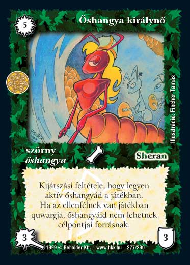 Szöveg: Kijátszási feltétele, hogy legyen egy aktív őshangyád játékban. Ha az ellenfélnek van játékban quwargja, őshangyáid nem lehetnek célpontjai varázslatnak és hatásnak.