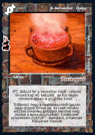 Szöveg: (P), áldozd fel a berserker italát: célpont lényed kap +5 sebzést, de kör végén mindenképpen a gyűjtőbe kerül.