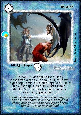 Szöveg: Célpont, X idézési költségű lény passzívan a tartalékodba kerül, te leszel a gazdája, amíg a Bájolás rajta van. Ha a lény gazdája a bájolás kijátszásakor elkölt 3 VP-t, a Bájolás nem jön létre, csak a gyűjtőbe kerül.
