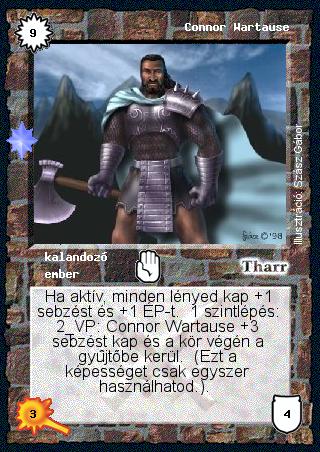 Szöveg: Ha aktív, minden lényed kap +1 sebzést és +1 ÉP-t. 1 szintlépés: 2 VP: Connor Wartause +3 sebzést kap és a kör végén a gyűjtőbe kerül. (Ezt a képességet csak egyszer használhatod.).