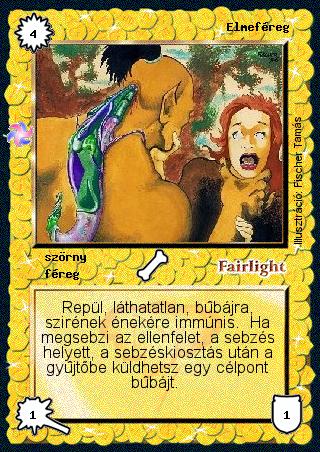 Szöveg: Repül, láthatatlan, bűbájra, szirének énekére immúnis. Ha megsebzi az ellenfelet, a sebzés helyett, a sebzéskiosztás után a gyűjtőbe küldhetsz egy célpont bűbájt.