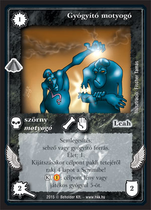 Szöveg: Semlegesítés: sebző vagy gyógyító forrás. Élet: 1. Kijátszásakor célpont pakli tetejéről rakj 4 lapot a Semmibe! (K), (1): Célpont lény vagy játékos gyógyul 5-öt.
