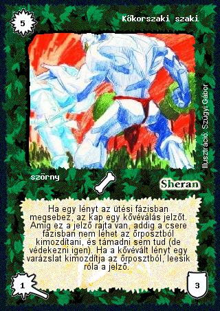 Szöveg: Ha egy lényt az ütési fázisban megsebez, az kap egy kővéválás jelzőt. Amíg ez a jelző rajta van, addig a csere fázisban nem lehet az őrposztból kimozdítani, és támadni sem tud (de védekezni igen). Ha a kővévált lényt egy varázslat kimozdítja az őrposztból, leesik róla a jelző.