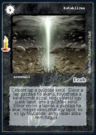 Szöveg: Célpont lap a gyűjtőbe kerül. Ekkor a lap gazdája ha akarja, folytathatja a kataklizmát azzal, hogy választ egy újabb lapot, ami a gyűjtőbe kerül. Ekkor ennek a lapnak a gazdája ha akar, megint választhat egy lapot, és ez így folytatódik, amíg valaki abba nem hagyja.