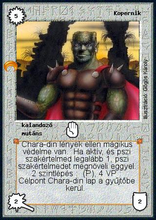 Szöveg: Chara-din lények ellen mágikus védelme van. Ha aktív, és pszi szakértelmed legalább 1, pszi szakértelmedet megnöveli eggyel. 2 szintlépés: (P), 4 VP: Célpont Chara-din lap a gyűjtőbe kerül.