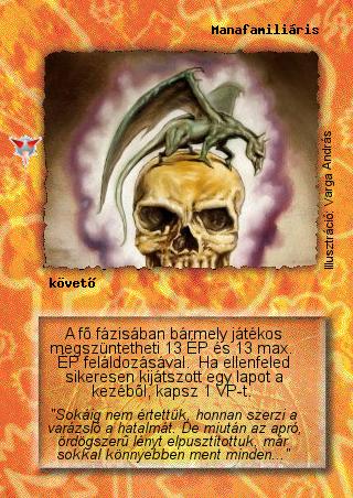 Szöveg: A fő fázisában bármely játékos megszüntetheti 13 ÉP és 13 max. ÉP feláldozásával. Ha ellenfeled sikeresen kijátszott egy lapot a kezéből, kapsz 1 VP-t.