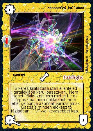 Szöveg: Sikeres kijátszása után ellenfeled tartalékjába kerül passzívan. Nem lehet feláldozni, nem mehet be az őrposztba, nem építkezhet, nem lehet célpontja azonnali varázslatnak. Gazdája minden előkészítő fázisában 1 VP-vel kevesebbet kap.