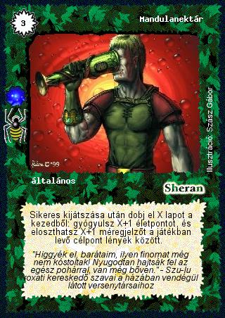 Szöveg: Sikeres kijátszása után dobj el X lapot a kezedből: gyógyulsz X+1 életpontot, és eloszthatsz X+1 méregjelzőt a játékban levő célpont lények között.
