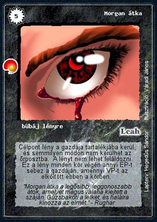 Szinesítő szöveg: "Morgan átka a legősibb, leggonoszabb átok, amelyet mágus valaha kiejtett a száján. Gúzsbaköti a lelket, és halálra kínozza az elmét." - Rughar