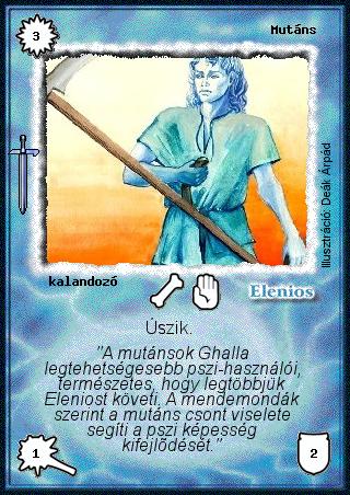 Szinesítő szöveg: "A mutánsok Ghalla legtehetségesebb pszi-használói, természetes, hogy legtöbbjük Eleniost követi. A mendemondák szerint a mutáns csont viselete segíti a pszi képesség kifejlődését."