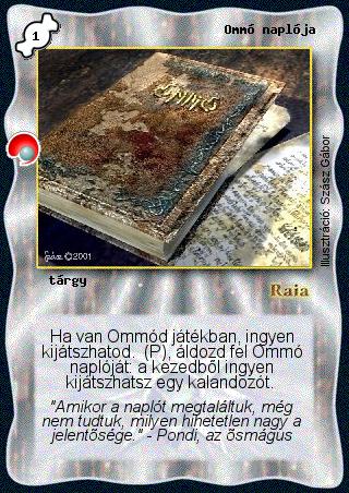 Szöveg: Ha van Ommód játékban, ingyen kijátszhatod. (P), áldozd fel Ommó naplóját: a kezedből ingyen kijátszhatsz egy kalandozót.