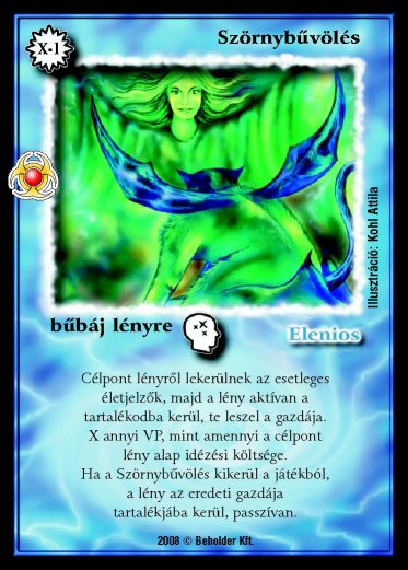 Szöveg: Célpont lényről lekerülnek az esetleges életjelzők, majd a lény aktívan a tartalékodba kerül, te leszel a gazdája. X annyi VP, mint amennyi a célpont lény alap idézési költsége. Ha a Szörnybűvölés kikerül a játékból, a lény az eredeti gazdája tartalékjába kerül, passzívan.