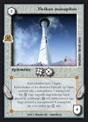 Szöveg: Kijátszásakor húzz 1 lapot! Kijátszásakor, és ha ellenfeled kijátszik egy lapot, azonnal rakj a manapilonra 1 manajelzőt! Ha 3_VP vagy nagyobb alap idézési költségű lapot játszol ki, a költséget X_VP-vel csökkentheted úgy, hogy leveszel a manapilonról X manajelzőt (de nem mehet így 1_VP alá).