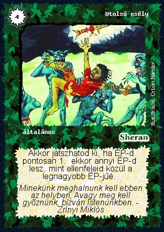 Szöveg: Akkor játszhatod ki, ha ÉP-d pontosan 1. ekkor annyi ÉP-d lesz, mint ellenfeleid közül a legnagyobb ÉP-jűé.