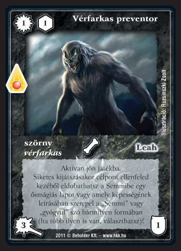 Hatalom Kártyái kártyalap - Vérfarkas preventor |  | - Kinézet - (A szavazáshoz be kell jelentkezned!) (átlag: 6 szavazat alapján 9.7)