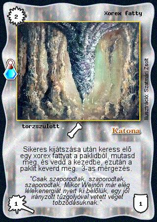 Szöveg: Sikeres kijátszása után keress elő egy xorex fattyat a paklidból, mutasd meg, és vedd a kezedbe, ezután a paklit keverd meg. 3-as mérgezés.