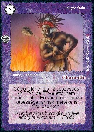 Szöveg: Célpont lény kap -2 sebzést és -2 ÉP-t, de ÉP-je ettől nem mehet 1 alá. Ha van direkt sebző képessége, annak mértéke is 2-vel csökken.