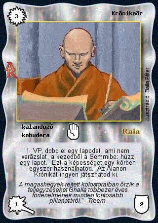 Szöveg: 1 VP, dobd el egy lapodat, ami nem varázslat, a kezedből a Semmibe: húzz egy lapot. Ezt a képességet egy körben egyszer használhatod. Az Alanori Krónikát ingyen játszhatod ki.