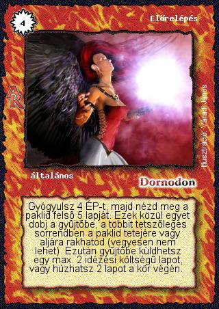 Szöveg: Gyógyulsz 4 ÉP-t, majd nézd meg a paklid felső 5 lapját. Ezek közül egyet dobj a gyűjtőbe, a többit tetszőleges sorrendben a paklid tetejére vagy aljára rakhatod (vegyesen nem lehet). Ezután gyűjtőbe küldhetsz egy max. 2 idézési költségű lapot, vagy húzhatsz 2 lapot a kör végén.