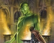 A zafír rózsa című könyvből kiragadott képen éppen Martel, a kitagadott lovag - Sparhawk örök ellensége - térdel Azash, az ősi gonosz istenség szobra előtt.