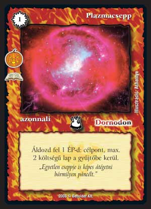 Plazmacsepp (7): Nem túl univerzális leszedés, de szerencsére meglehetősen olcsó. Kb. Morgan kisujja erősségű. Szerintem leginkább a kiegészítő pakliban használják majd.