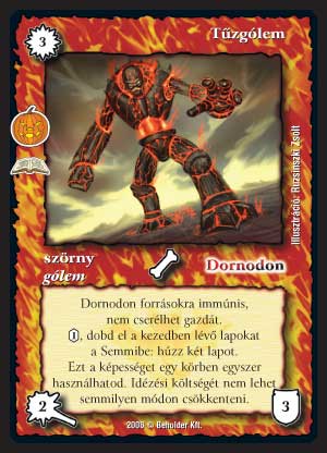 Tűzgólem (8): Képességén azonnal látszik, hogy gyors, pörgős paklikba való. Gyorsan kijátsszuk az összes lapunkat, majd teljesen ingyen húzunk kettőt. Legalábbis ez a tervünk vele. Ez legjobban Fókusz meglelésével fog összejönni, az első körben már igen hatékonyan tud teljesíteni, de később is jó. (Legtöbbször jobb, mint egy Mokku.) Gólem pakliba is lehet vele játszani, csak akkor úgy kell összeállítani a paklit, hogy értelme is legyen a képességének (Esetleg Korallgólemnek dobáljuk majd a lapjainkat). A Dornodon forrásokra való immúnitása pedig Norddal való kombózásra lesz tökéletes.