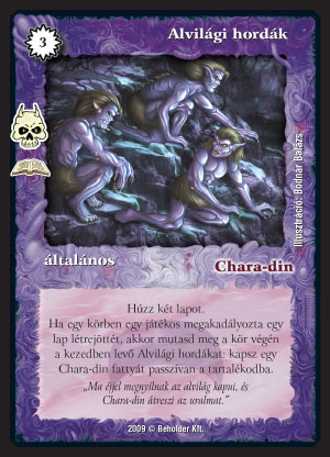 Alvilági hordák (8): Unod már, hogy folyton lecounterelnek? Akkor itt egy érdekes válaszlépés erre a szituációra. Csak meg kell mutatni, és már érkezik is egy ingyen fatty a tartalékba. Igaz, kissé sovány vigasz, de ne feledjük, hogy ezért csak meg kellett mutatni egy lapot, amit később még ki tudunk játszani. Érdekesebb lehetőség, ha sok counter mellé használjuk nyerés gyanánt. Nem elég, hogy megakadályozzuk az ellenfél lapjait, még a konkrét győzelmünket is közelebb kerül.