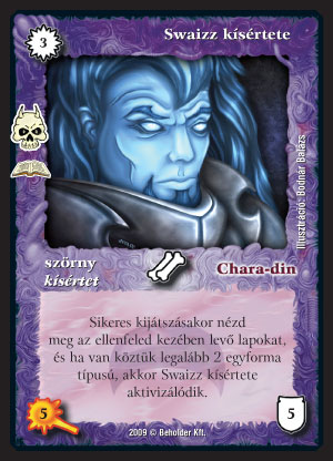 Swaizz kísértete (7): Újabb 5/5-ös lény, igaz ez kissé gyengébb. Bár látszólag nagy erőt képvisel, a gyakorlat viszont azt mutatja, hogy az esetek jelentős részében nem fog repülni. Magyarán abszolút nem tekinthetjük repülő lénynek. Sosem mindegy, hogy aktívan vagy passzívan jön le egy lény, de meccsek fognak múlni rajta, ha aktív lényre lenne szükségünk, s mi csak ezt tudjuk hozni, s az ellenfél 5 lapjából 5 különböző típusú van.