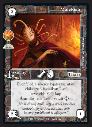 Malekish (7): Ez a lap egy-két éve kegyetlen erős lett volna, manapság már kicsit kérdéses számomra, hogy vajon berakja-e majd valaki egy komoly pakliba. No nem mintha rossz lenne a játék elején 0 VP-n tartani az ellenfelet, inkább a gyorsuló tempó miatt egyre többen használnak 0 VP-s, vagy ingyenesen is kijátszható lapokat. És ennek tükrében már nem annyira jó dolog manát pusztítani.