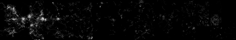 részek a sűrűbben látogatott régiók, míg a szürkébbek a kevésbé frekventált