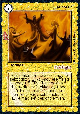 | (AK122) Kalamajka: Kis pontosítás a lap szövegében: „vagy ellenfeled gyógyul 5 ÉP-t (ha legalább 5 hiányzik neki a maximálishoz képest):”. |